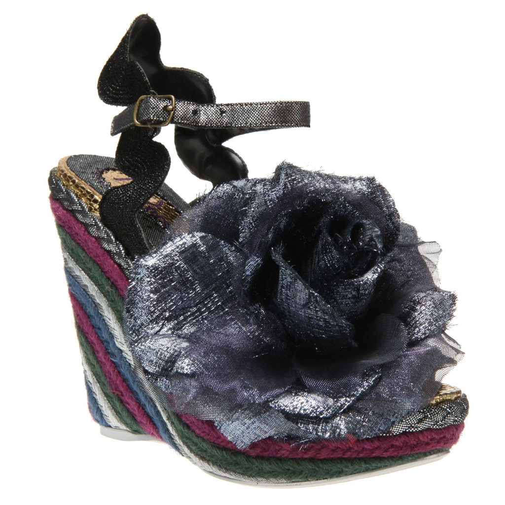 Loading... Please wait...Weavers by Irregular Choice is a beautiful wedge that has some serious flower power! This unique and charming shoe features a gorgeous striped woven wedge heel, zig zag heel strap and adjustable ankle straps. Fabric upper, man-made lining, resin sole, metal buckle, over-sized floral accent, 1 1/2" platform, 5" wedge heel. This colorful and edgy wedge will surely be a springtime delight!