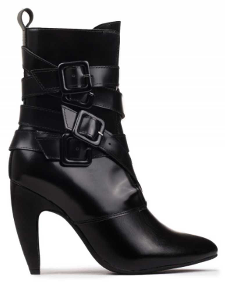 Loading... Please wait...Destroyer by Jeffrey Campbell is a boot that means business. This stiletto beauty features a 4" curved heel, pointed toe, multiple straps, and an inside zipper. Patent leather upper and genuine leather lining.